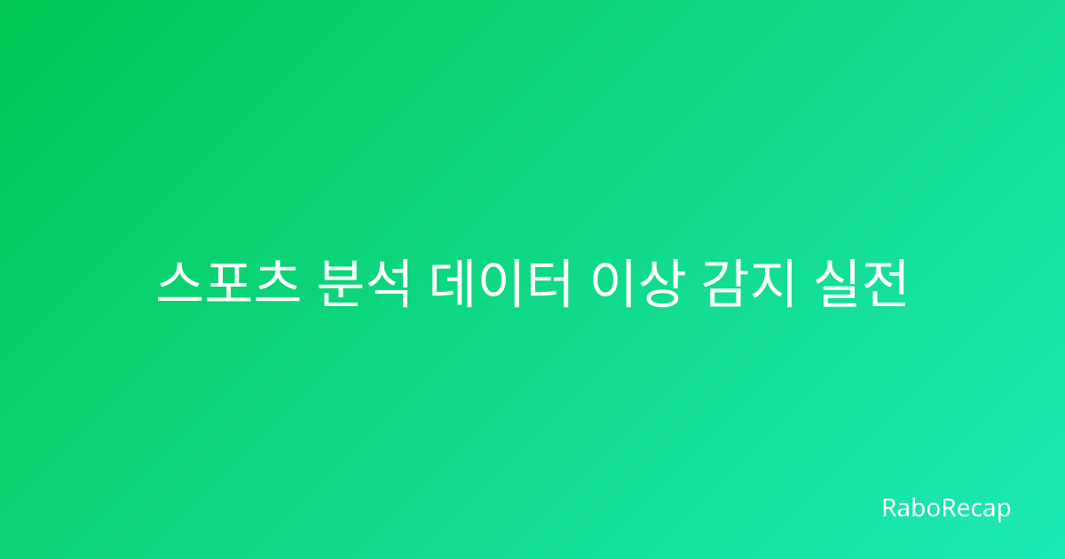 스포츠 분석 데이터 이상 감지 실전 기법 2026