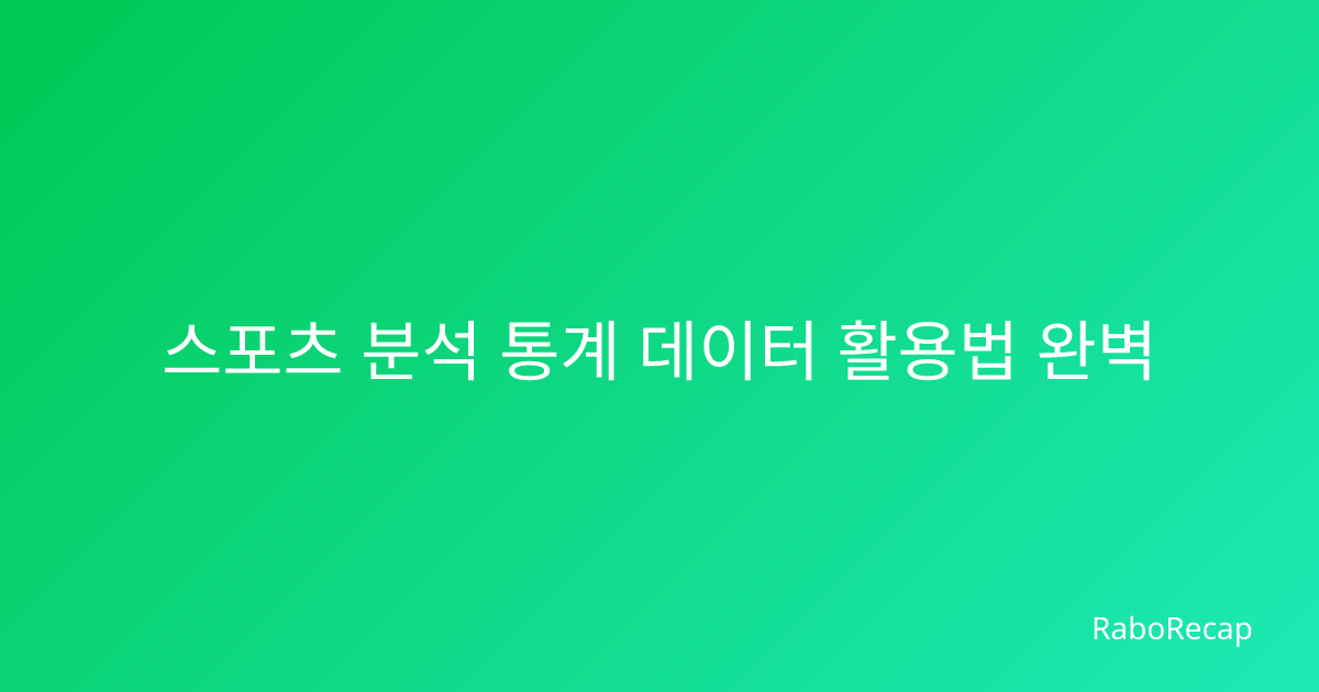 2026년 최신 스포츠 통계 데이터 수집 방법부터 실전 분석 노하우까지. GPS 트래킹, AI 비디오 분석, 실시간 데이터 활용법을 단계별로 정리했습니다.